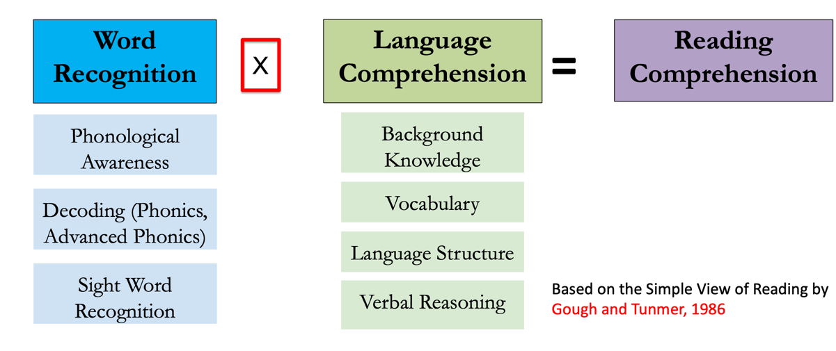 The Simple View of Reading is a helpful way to understand what children need in order to read well. It explains that reading is made up of two big skills, decoding and language comprehension. Decoding is the ability to read the words on the page. Language comprehension is the ability to understand what those words mean.